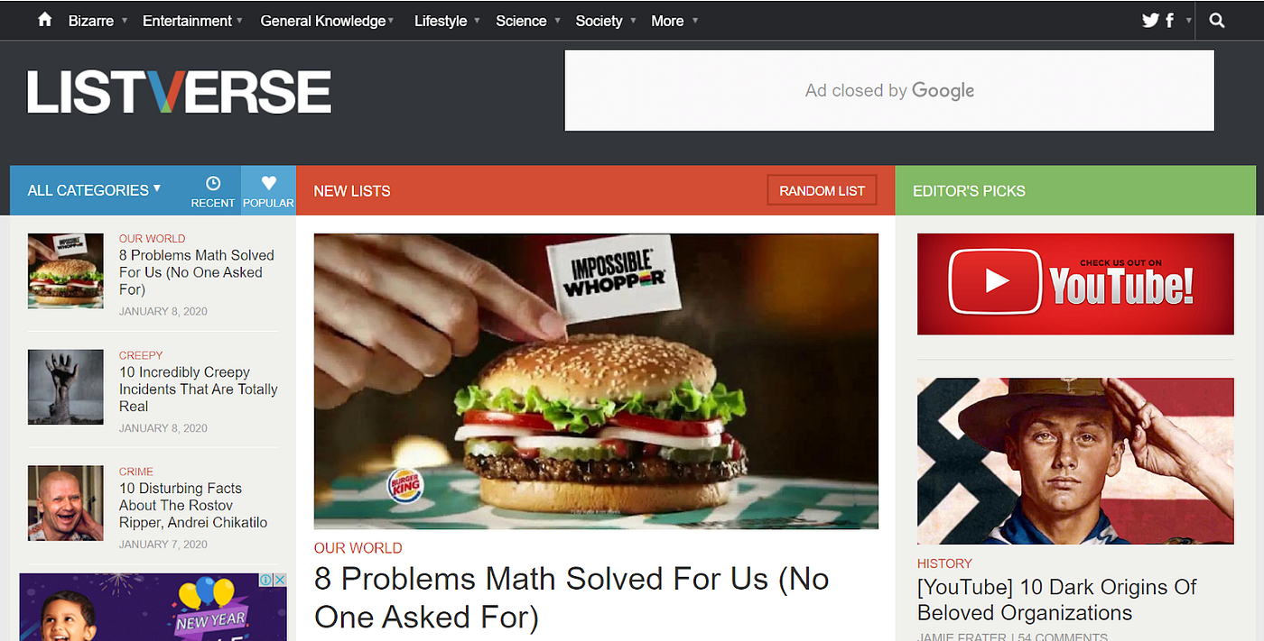 Listverse gives you lot a platform to write for various genres like entertainment, lifestyle, scientific discipline, society, and full general awareness. It even gives y'all an pick to write nigh bizarre topics ranging from creepy and weird stuff to mysteries.